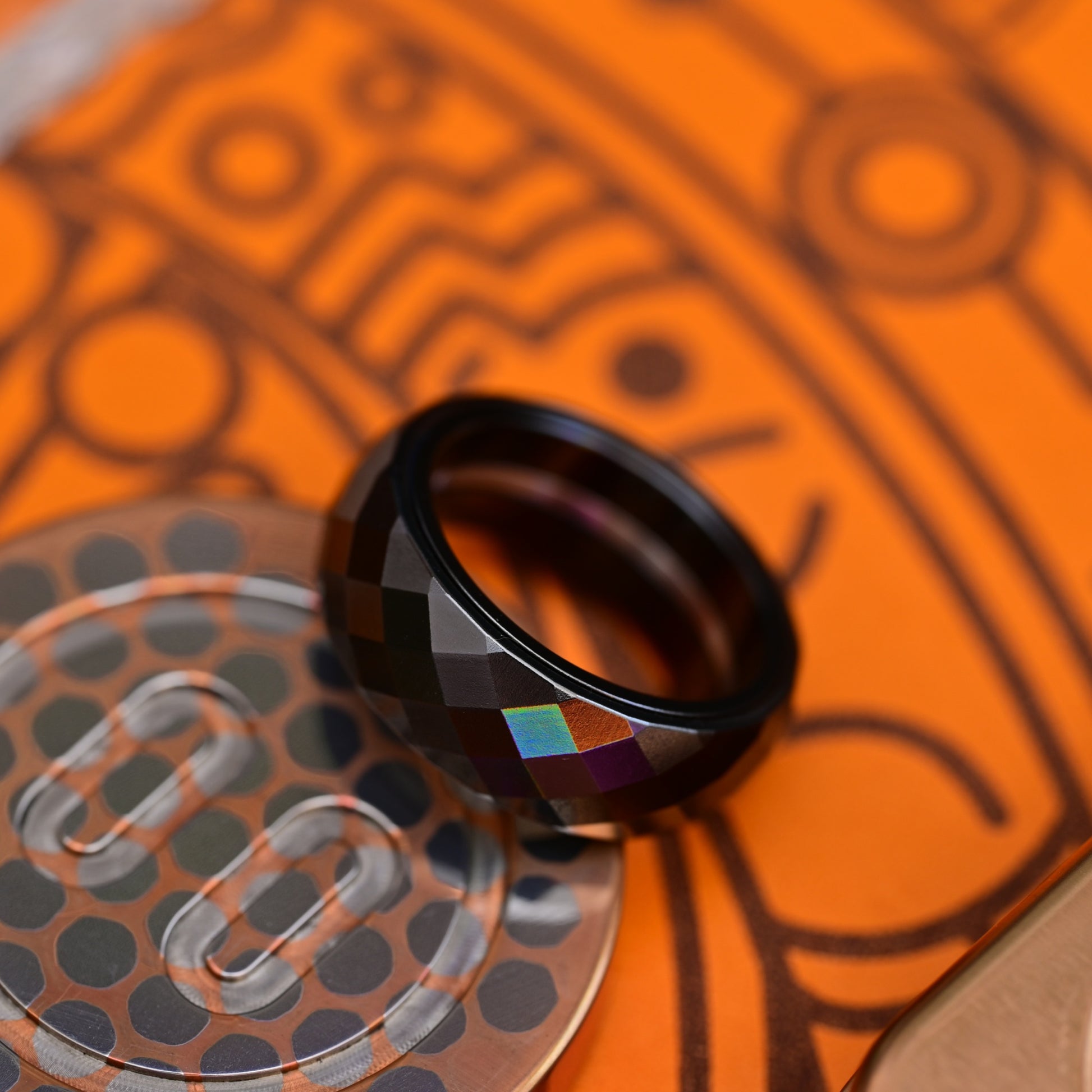 The material is zirconium alloy and adopts a diamond cut design. Further combining EDC elements with jewelry elements, truly achieving wearability. In order to resist scratches on the polishing surface, orange peel polishing was applied, which ensures brightness while being more wear-resistant and slip resistant.