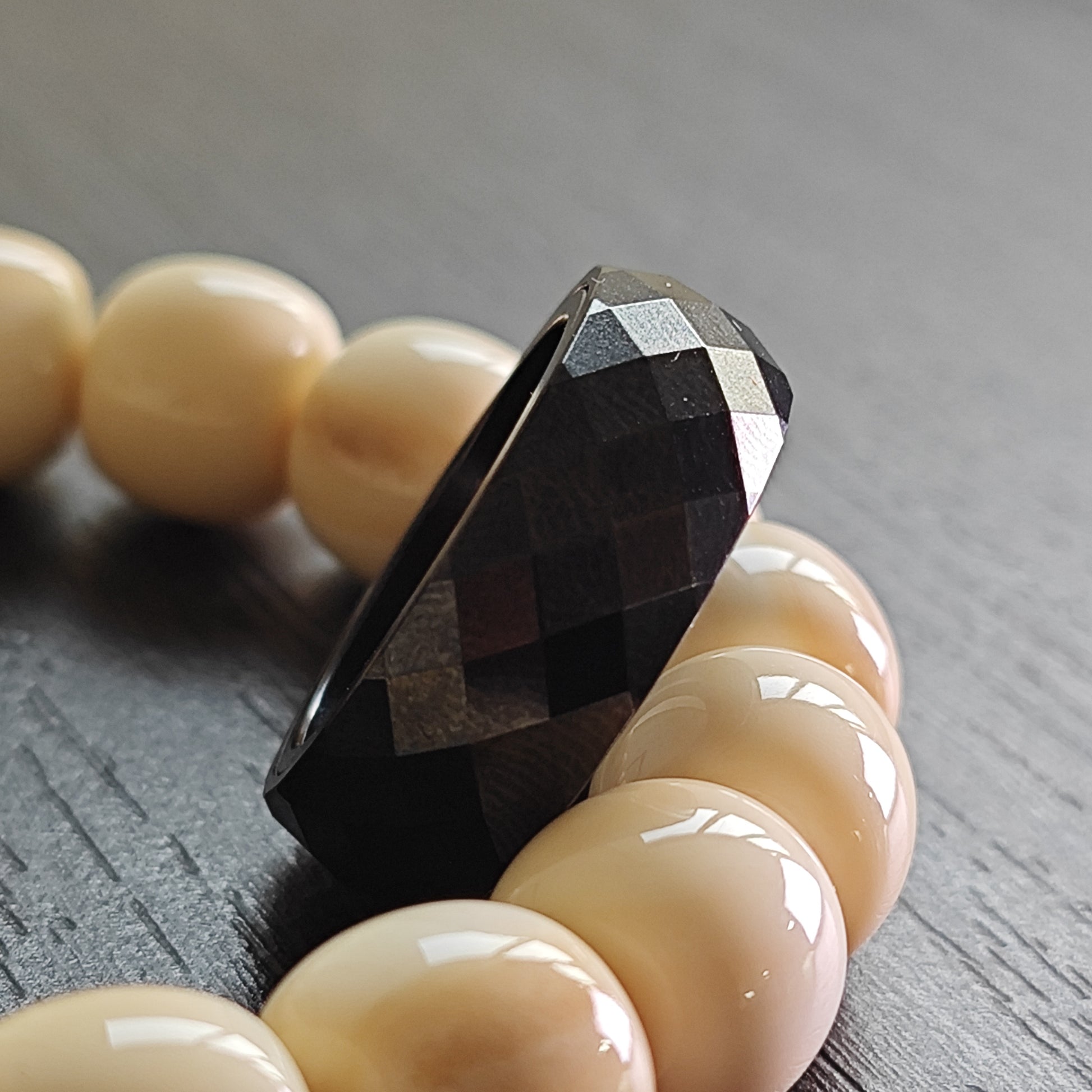The internal structure of the Black Diamond Pig Ring is the same as that of the Dama Pig Ring, using Teflon ring instead of beads for a tighter feel. Because the Teflon ring is made by bending a straight strip, it may rotate slightly tighter when first unpacking. After two days of running in, the Teflon ring will enter a stable form and the feel will reach its optimal state.