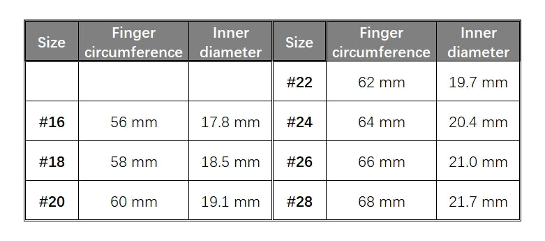 Size #28 : Finger circumference 68 mm, Inner diameter 21.7 mm