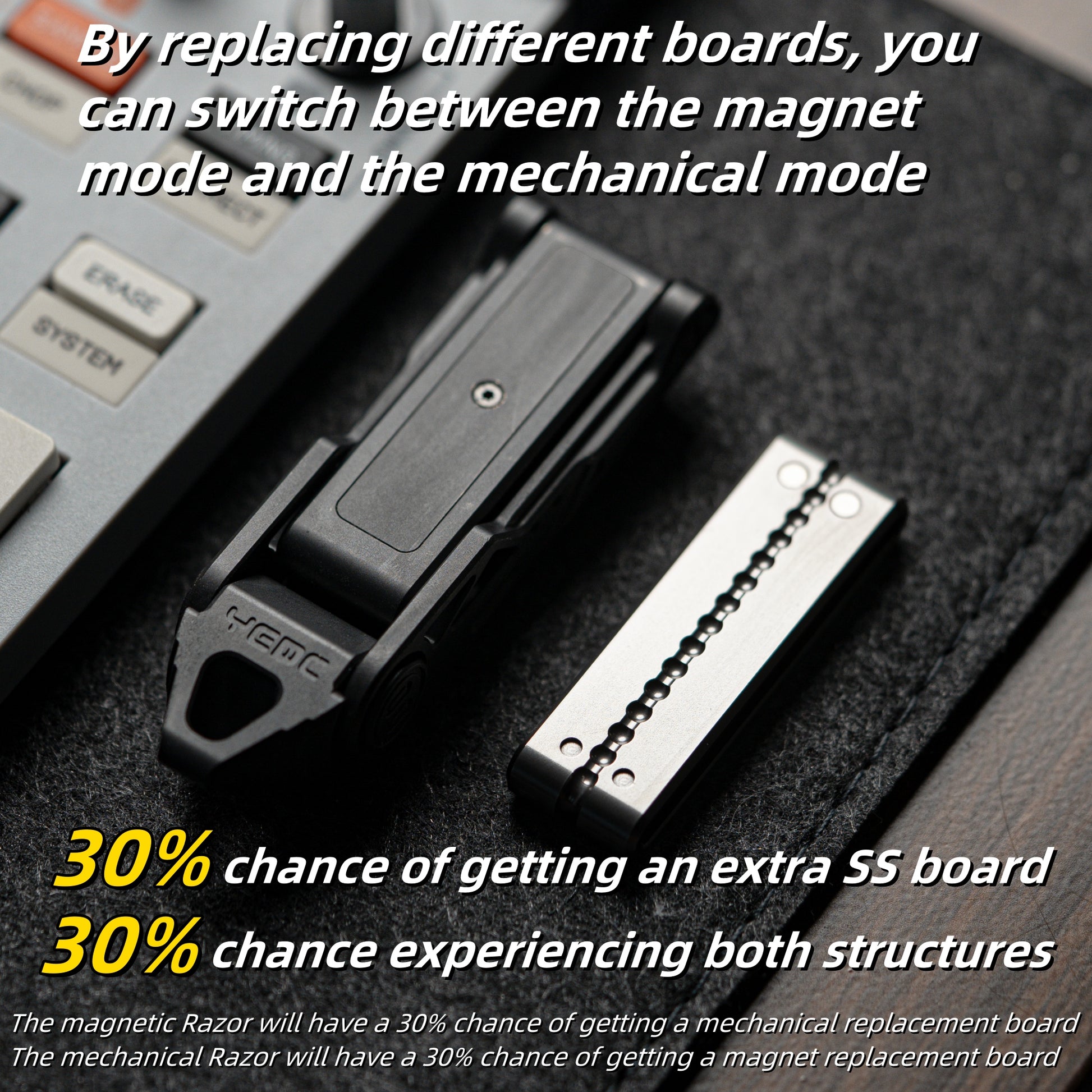 There is a 30% chance of getting an additional SS board. This is a gift from YEDC to lucky buyers. Although the SS board paired with the zirc body may not look very good, you can get an additional way to play. 30% of the boxes of magnetic razors contain a mechanical SS board, while 30% of the boxes of mechanical razors contain a magnetic SS board. By replacing different boards, you can switch between the magnet mode and the mechanical mode. (You also need to take out or put in the magnets from/to the main body)