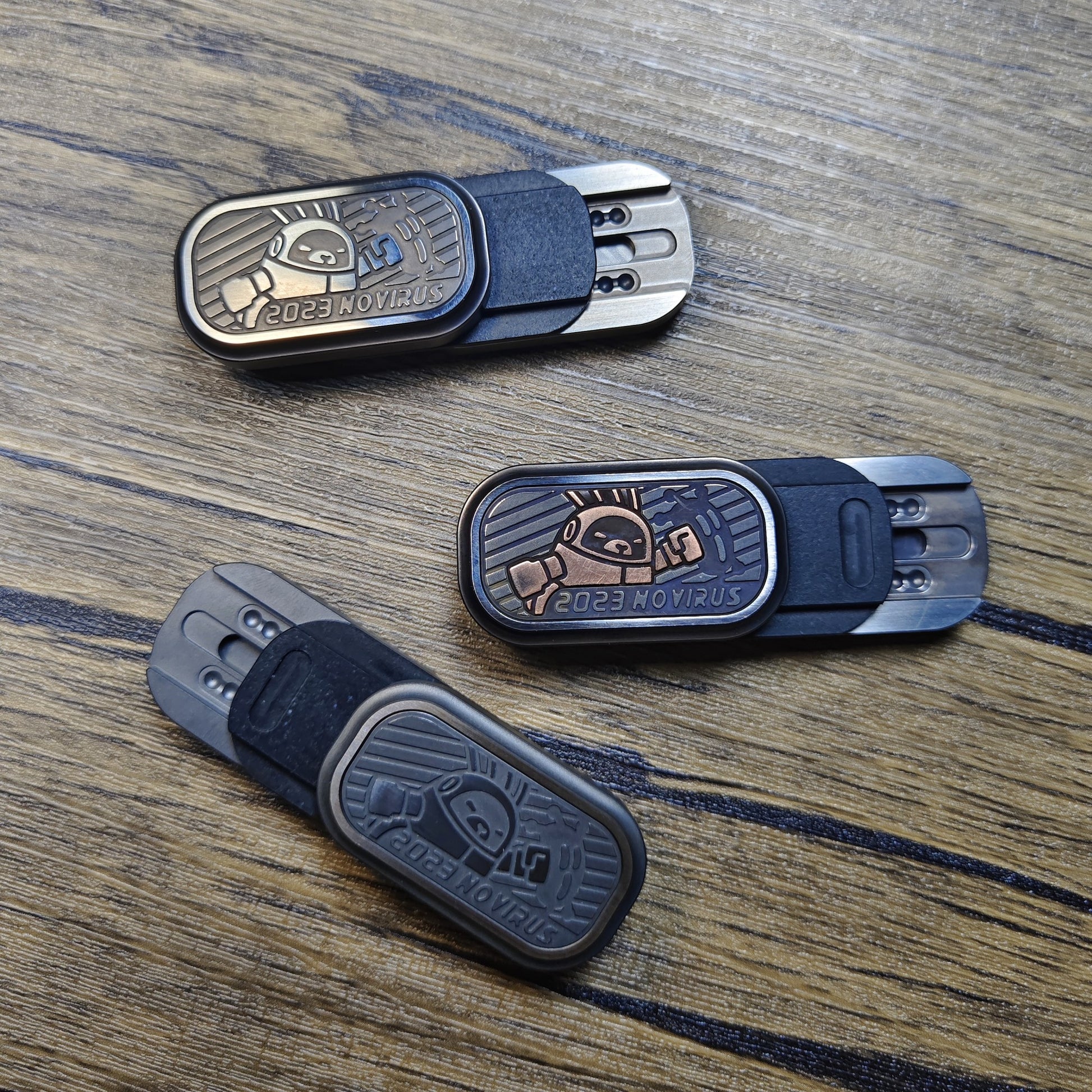 #10 shell is designed to commemorate COVID-19 hard time. The front side inlays an epidemic prevention personnel, and writes "2023 NO VIRUS". The back side inlays a lucky rabbit. The material of inlay component varies with each material option.