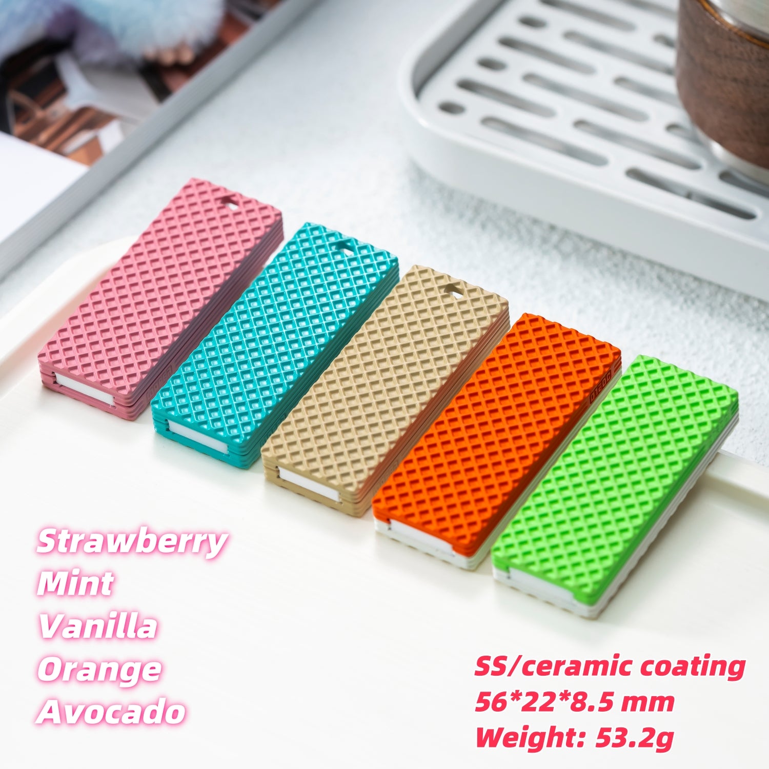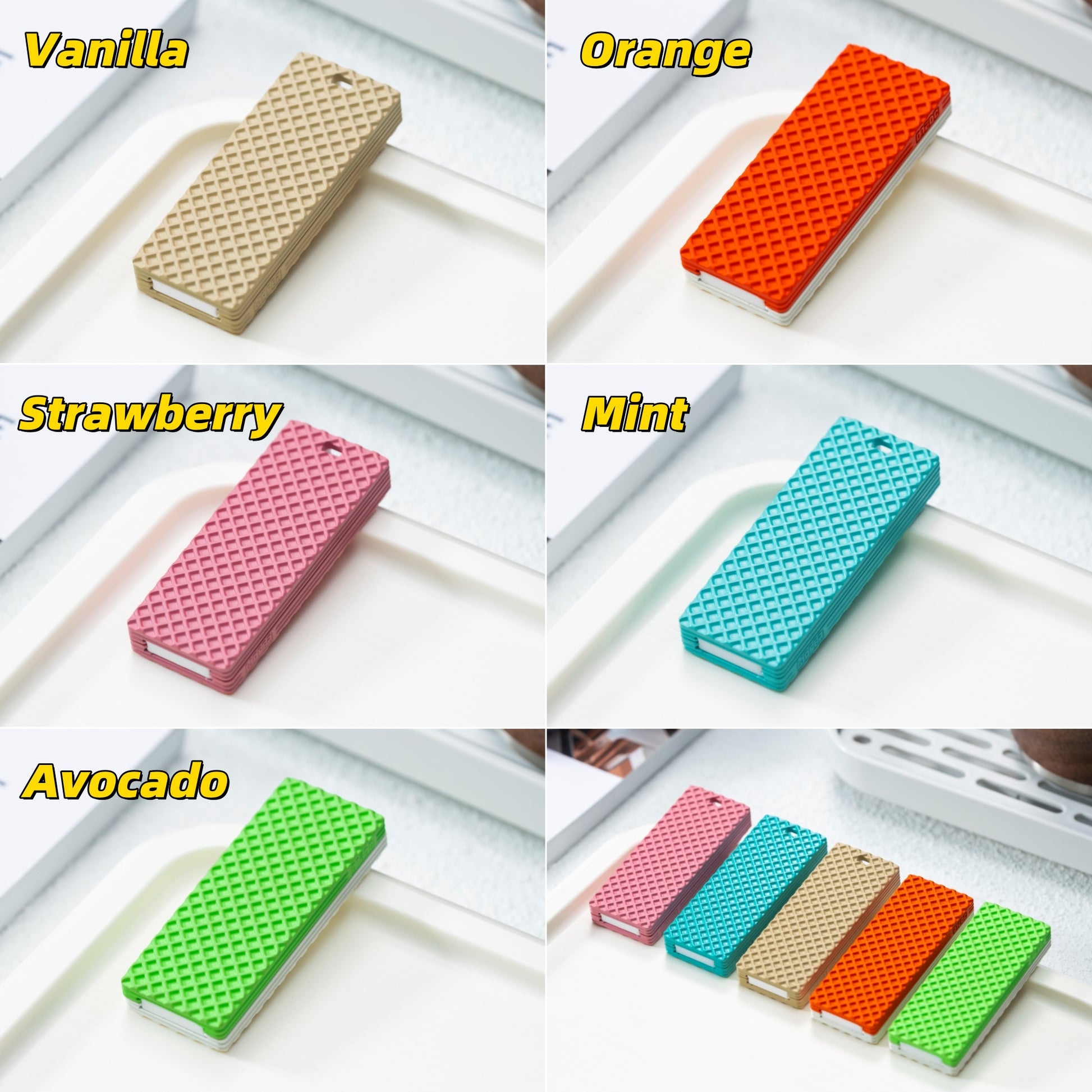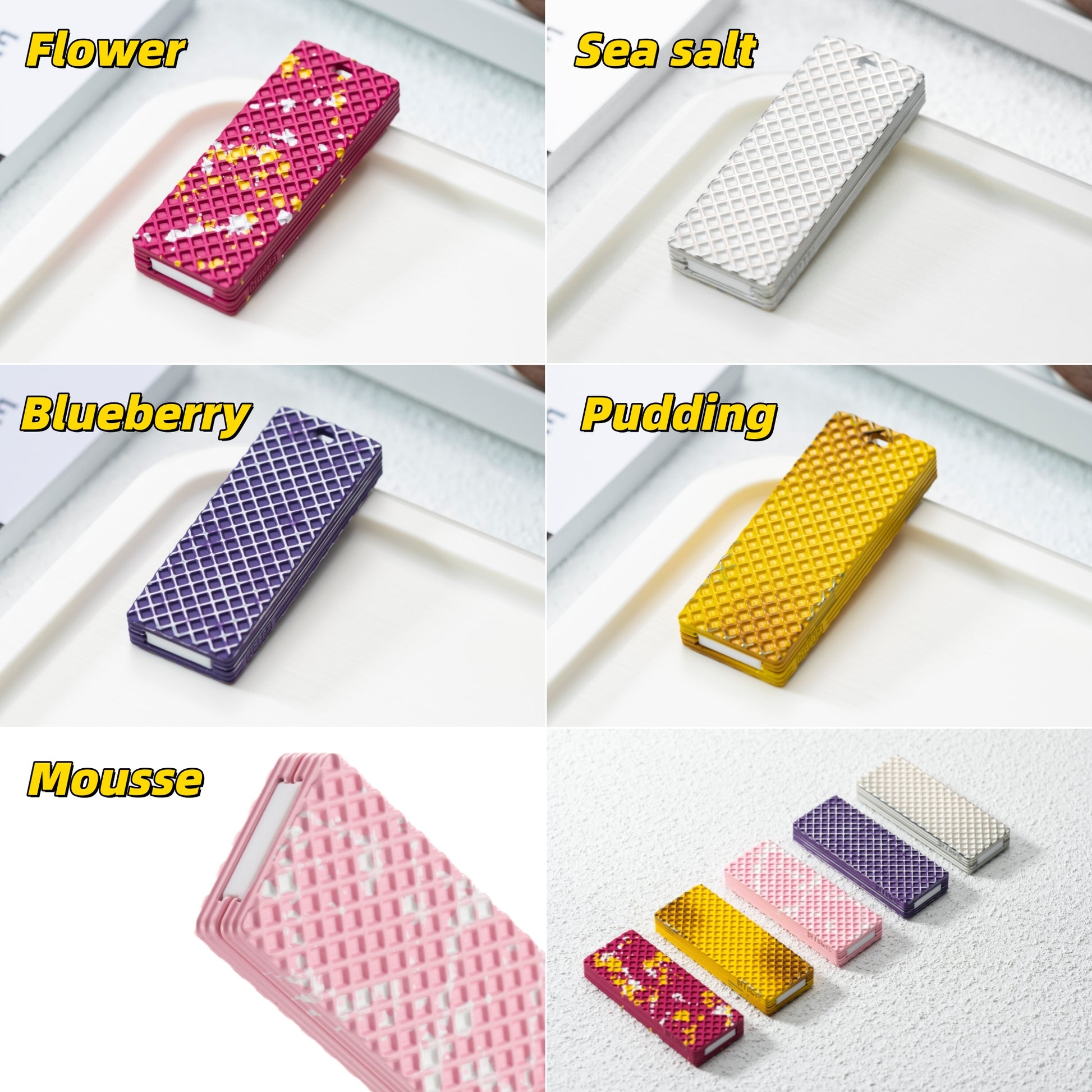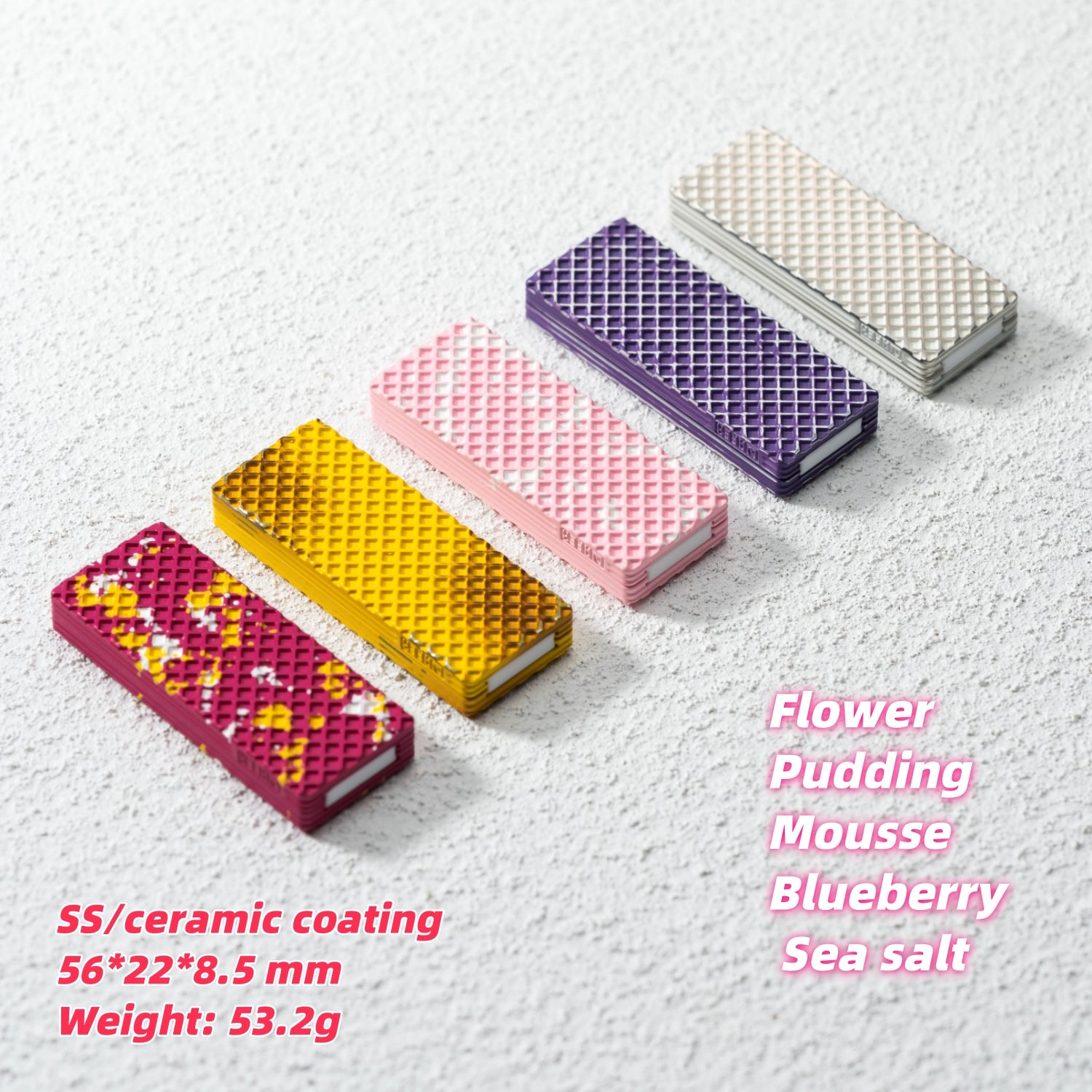 The appearance perfectly showcases the characteristics of wafer cookies. It is thin and light, with an ultra-thin design, making it easy for Every Day Carry. The 1:1 wafer texture and ceramic coating bring a visual temptation like that of desserts. It has a slightly sandy touch, restoring the crispy texture of wafer. And there is a clear tinkling sound when it is pushed.