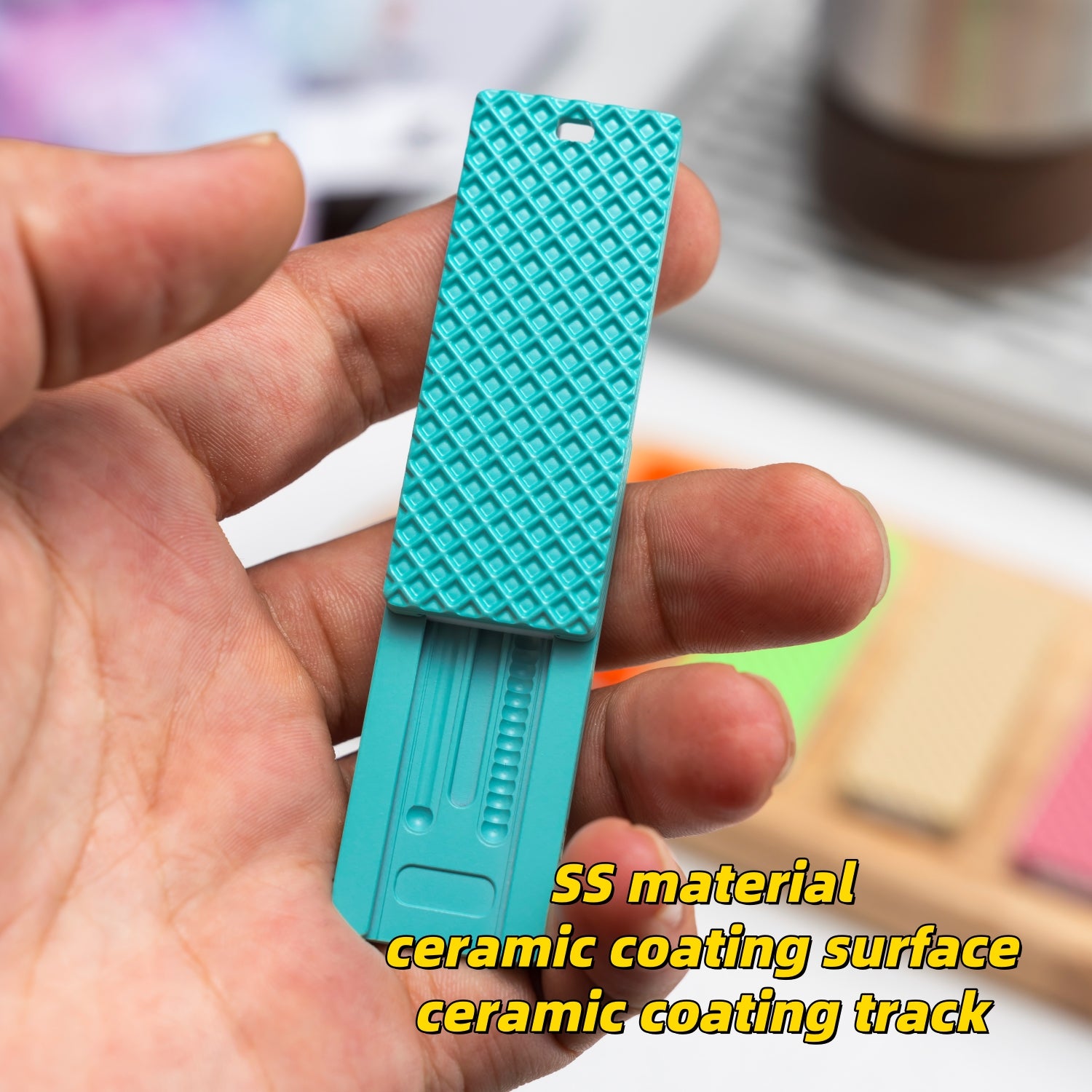 This is the first attempt by 01EDC to import the ceramic coating technology, making the EDC more aesthetically pleasing and offering a richer tactile experience. By continuously experimenting with the thickness and configuration changes of the ceramic-coated track, it breaks through the tactile boundary of mechanical slider in terms of materials and processing technology. The tactile sensation brought by the ceramic-coated track is very special. It's like flipping a bouncy gummy candy, combining firmness and softness, which is truly refreshing.